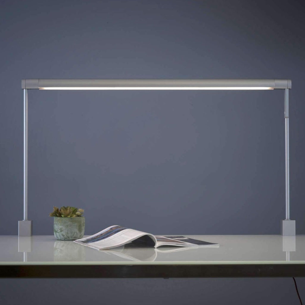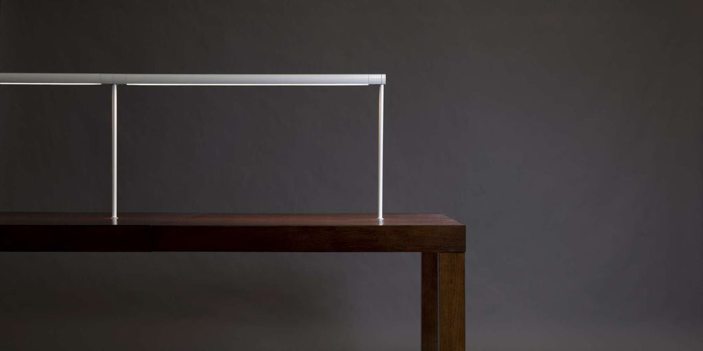 Sobre s'élève au-dessus de votre surface de travail pour fournir à la fois une lumière ambiante et une lumière de travail. La barre lumineuse à LED Sobre pivote pour faire briller la lumière directement sur votre bureau ou votre zone de travail, ou pivote vers le haut pour une lumière ambiante parfaite. Idéal pour les longues tables ou les espaces publics, Sobre se monte directement sur la table ou le bureau pour maximiser l'espace de travail disponible. Plusieurs unités peuvent être connectées ensemble pour maximiser le potentiel de Sobre. Les concepteurs peuvent personnaliser les dimensions, la température de la lumière, la finition et plus encore.