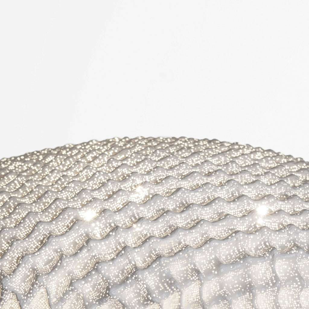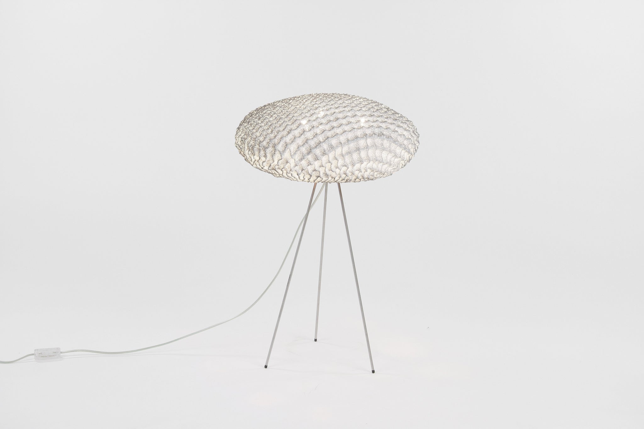 La texture est la caractéristique principale de cette collection d'inspiration organique faite de SIMETECH®. Une répétition de petits cercles qui forment une carapace arrondie irrégulière, à travers laquelle les filtres de lumière générant de belles nuances. Un micro paysage de collines et de vallées, de lumières et d'ombres, qui résulte harmonieux dans n'importe lequel de ses modèles, des suspensions aux lampes murales.