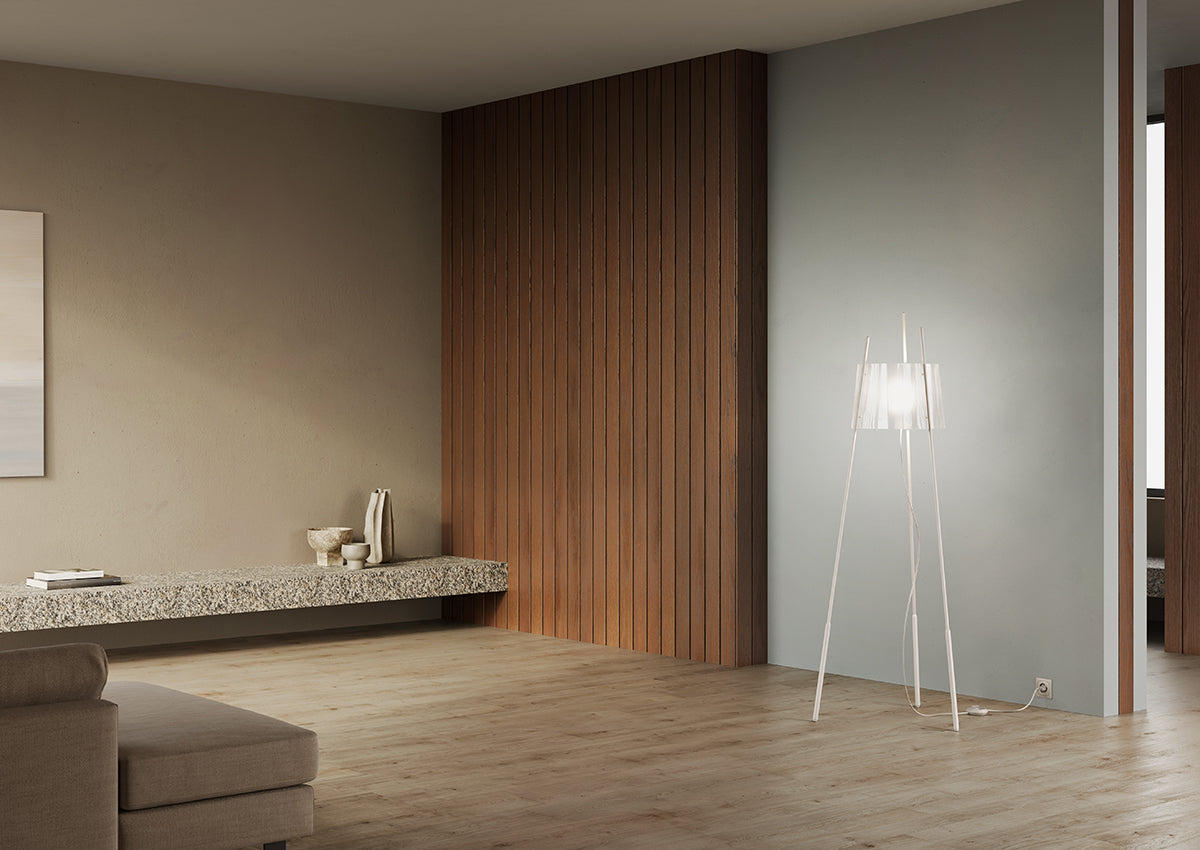 Les longues tiges élancées du scirpe, plante aquatique élégante, sont l'inspiration derrière les éléments qui soutiennent cette lumière au design délicat, presque lyrique. Et le même mouvement de la plante dans le vent se reflète dans l'abat-jour inhabituel. Une forme légèrement irrégulière, avec un verre opaque à l'intérieur et un verre transparent à l'extérieur, animé par la surface brillante à facettes.